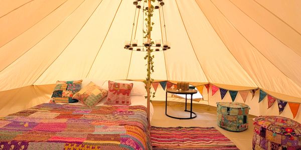 I have a 4 and a 5 metre Bell Tent. The 5M one has the added bonus of a stove, to keep you toasty in the late Spring/Early Autumn!